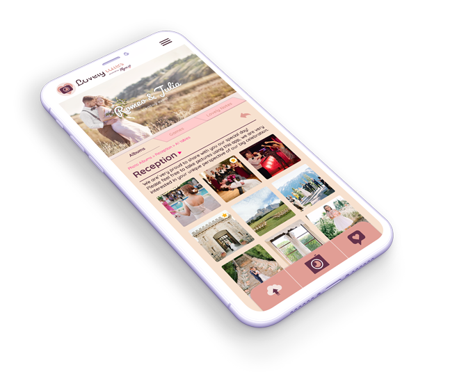 family. With Luvly Tales you can have your guests be your wedding photographers by having fun! Just share the web app and let the magic happen.